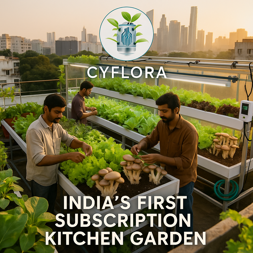 Cyflora is India’s first subscription-based greenhouse platform that makes gardening easy, sustainable, and accessible for everyone. We help you grow fresh mushrooms, microgreens, vegetables, fruits, and flowers right on your rooftop or land.